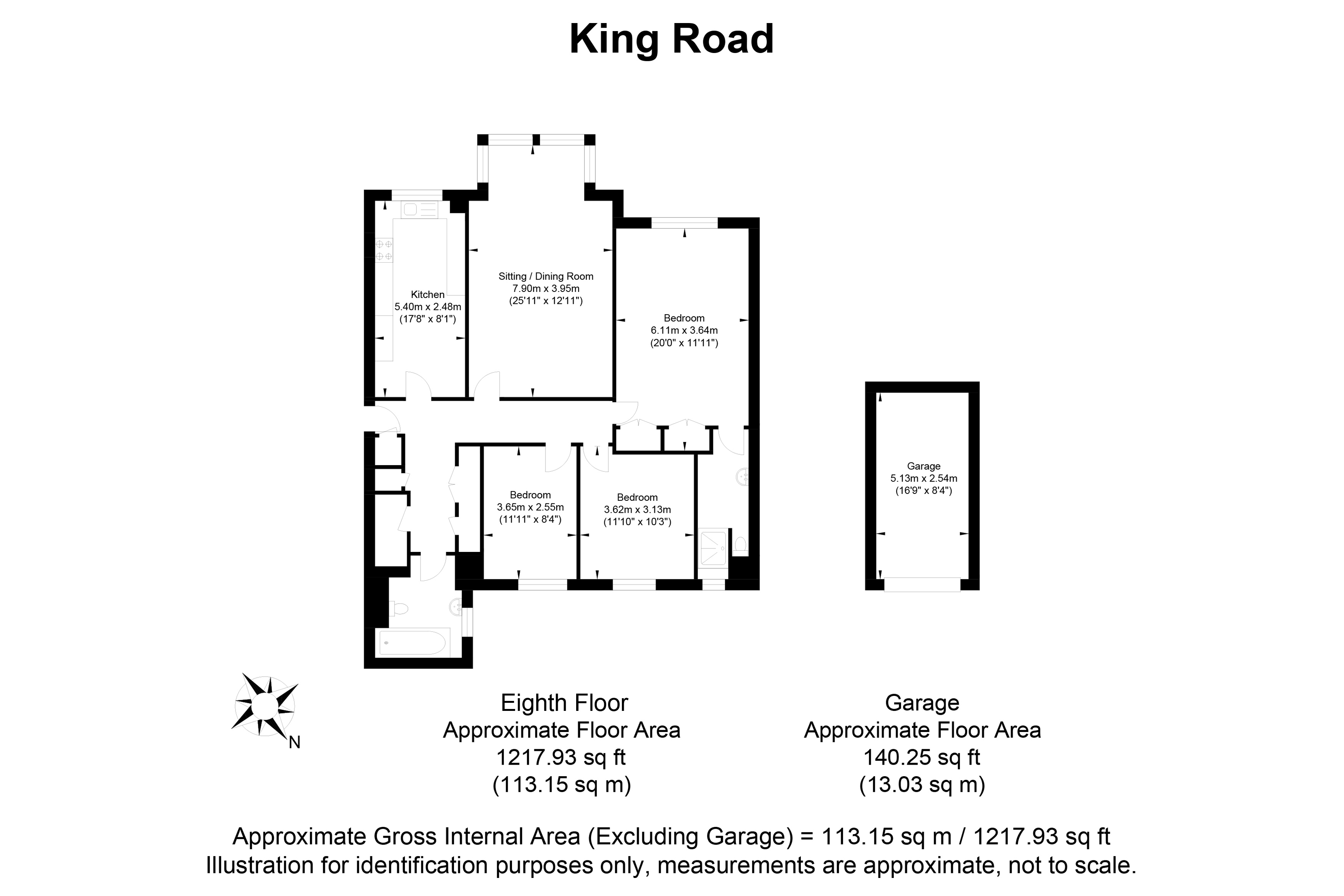 The property is accessed via passenger lift to the 8th floor and comprises a south facing living/dining room with box bay window offering sea views, separate fitted kitchen also with sea views, master bedroom with en-suite shower room, two further bedrooms, bathroom and hallway with good storage. There is a single garage to the rear of the building.